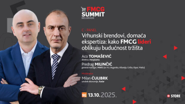 InStore Srbija, dvanaestu godinu zaredom, organizuje FMCG Summit Beograd – centralni trgovački događaj. Iskoristite ovu sjajnu priliku i dođite 13. oktobra u Sava Centar.Ponosno najavljujemo naše sjajne paneliste – Aco Tomašević, direktor, Neoplanta & Predrag Milinčić, general manager, MARS (ex YU, Bugarska, Albanija, Grčka, Kipar, Malta). Ne propustite priliku da ih čujete uživo! Prijavite se danas [ www.fmcg-summit.rs] i budite spremni da iskoristite pun potencijal FMCG Summita Beograd 2025! Šta ćemo čuti? Kako voditi najveće brendove u FMCG sektoru kada tržište postaje sve zahtevnije? Panel okuplja lidere kompanija kako bi