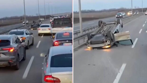 Auto završio na krovu na Pupinovom mostu: Stravična nesreća, Hitna pomoć zatekla krvavog čoveka (video)