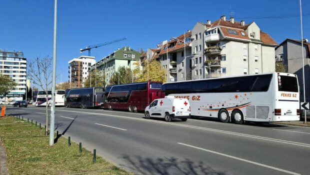 Autobusi koji prevoze naprednjake okupirali Novi Sad: Pristalice SNS organizovanu kreću u Ćacilend sa više lokacija VIDEO