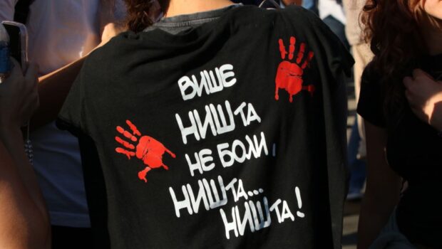 U subotu, 1. novembra, u Novom Sadu je na veličanstven i potresan način obeležena godišnjica pada nadstrešnice na Železničkoj stanici.Ono što je obeležilo ceo događaj i bio jedan od najemotivnijih trenutaka u događaju koji je trajao celog dana bila je pesma "Cveta trešnja u planini" čiji su se prvi tonovi čuli odmah nakon 16-minutne tišine – u 12.08 sati, a savršeno ju je izveo novosadski Pop hor radio kojim je dirigovala Dušica Stojković dok je solistkinja bila Jelena Radić. Pesmu je, na stihove Dušana Kovačevića, komponovao Zoran Simjanović. Foto: Vedran Bukarica Pisac i akademik Dušan