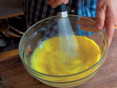Lupati žicom jaja zajedno sa vodom dok se ne zapene. Dodati supu i mešati na pari dodajući postepeno sok od limuna. Kad se umak zgusne, skinuti vatre, ostaviti da postoji desetak minuta, pa tek onda služiti.