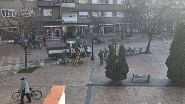 Ova Kamera će tematski da bude drugačija. Nema šetnje Kejom, nema Nišave… Svakodnevni detalji, viđeni na putu "od škole…", ne na putu od kuće do posla i tu po ulicama našeg "zelenog" grada. Ko kaže da nije "zeleni"? Jutros sam ih na trgu video! "Zeleni" osvojili grad. Evo ih na Trgu, "kraste" ukrasno drveće. I ovi su iz Komunalca, ali nisu "zeleni"! Počeli su još sredinom novembra da krase grad, kao jelku. Posebno je oduševio sneško. Komšije su se u subotu