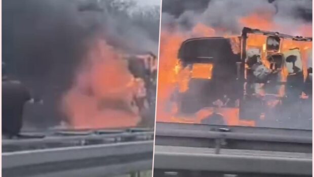 Kamion gore nasred auto-puta Beograd Niš Vatra se širila na sve strane, stravični prizori (video)