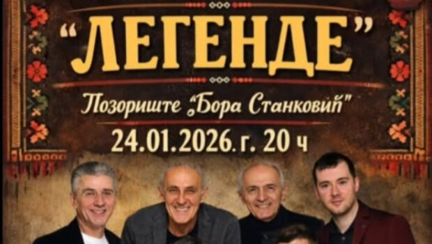 U okviru programa obeležavanja Svetosavske nedelje, Kulturno-obrazovni centar Vranje organizuje koncert popularne muzičke grupe „Legende“. Koncert će biti održan u subotu, 24. januara 2026. godine, u Pozorištu „Bora Stanković“, sa početkom u 20 časova.Vranjanska publika imaće priliku da uživa u bezvremenskim hitovima jedne od najpoznatijih domaćih pop-grupa, čiji nastupi godinama privlače ljubitelje kvalitetne muzike svih generacija. Ovaj događaj predstavlja jedan od centralnih kulturnih sadržaja Svetosavske nedelje u Vranju.