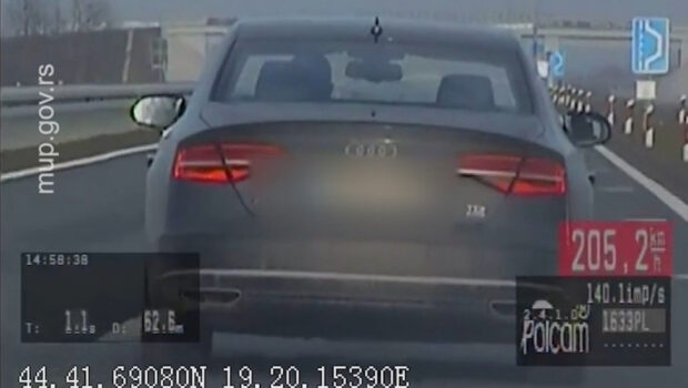 Pripadnici Ministarstva unutrašnjih poslova – Uprave saobraćajne policije, koji kontrolišu saobraćaj presretačima, danas u kratkom vremenskom intervalu isključili su iz saobraćaja dvojicu stranih državljana zbog većih prekoračenja brzine.Najpre je oko 15 časova na teritoriji opštine Loznica zaustavljen četrdesettrogodišnji državljanin Bosne i Hercegovine koji se vozilom marke "audi A8" kretao brzinom od 205,9 kilometara na čas, na delu moto-puta Loznica – Šabac gde je ograničenje brzine 100 kilometara na čas. Nakon toga, u 15.15 časova na teritoriji Sombora zaustavljen je pedesetosmogodišnji državljanin Italije koji se vozilom marke "audi SQ8“ kretao brzinom od 183,5 kilometara na čas na delu