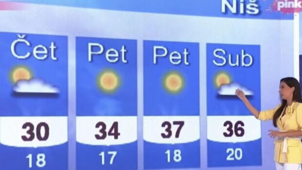 Egelja se na šaljiv način izvukla iz situacijeU Jutarnjem programu na televiziji Pink desila se neočekivana greška. Voditeljka Marija Egelja imala je peh dok je vodila prognozu, a nakon što je primetila grešku u grafici, pokušala je da se izvuče. Umesto regularnog vikenda – subote i nedelje, u vremenskoj prognozi su stajala dva petka. TV Pink/Printscreen Pogledaj galeriju TV Pink/Printscreen Pogledaj galeriju Jovanka Bojković Pogledaj galeriju Egelja se na šaljiv način izvukla iz situacije, pa je mnogobrojnim