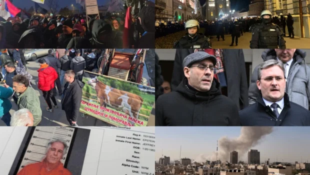 Od protesta u Valjevu, preko Kragujevca i Orašca, pa sve do "šamara" ispred Srpskog narodnog pozorišta u Novom Sadu; prosipanje mleka i blokade puteva koje, ovog puta, organizuju poljoprivrednici; Kritike Mrdićevih zakona, suđenje aktuelnom ministru, kriza u pravosuđu; Epstinovi fajlovi i otvorene istrage širom sveta; i na kraju sukob SAD i Izraela sa Iranom – sve su to vesti koje su stale u februar.Nekoliko stotina građana iz Valjeva, ali i onih koji su došli iz drugih gradova Srbije okupilo se 14. Februara na gradskom trgu na protestu pod nazivom „Valjevo pamti", koji je organizovan povodom šest meseci od incidenata od 14. avgusta prošle godine. Tada je tokom protesta došlo do onoga što sami učesnici opisuju kao “masovnu policijsku brutalnost nad demonstrantima, uključujući i maloletnike”. Simbolični uvod u ovaj skup, poput onih ranijih, bila je višednevno