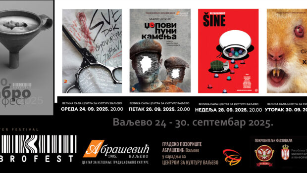 petak, 26. septembra 2025. VALJEVO- Tradicionalnu pozorišnu manifestaciju „Abro fest“ obeležiće dve premijere Gradskog pozorišta „Abrašević“: „Džepovi puni kamenja“ po tekstu Mari Džons (petak, 26. septembar) i „Siroti mali hrčki“ po tekstu Gordana Mihića (utorak, 30. septembar). Režija Miroslav Trifunović, kostimi Branka Šišinački Obradović, scenografija i vizuelni identitet – Dušan Arsenić. Nastavljajući saradnju sa talentovanim, mladim novosadskim i beogradskim