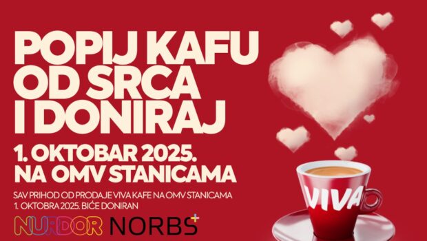 Zajedno možemo više! Pridružite se hiljadama ljudi širom Srbije koji će 1. oktobra popiti VIVA kafu – od srca.Prvog oktobra, na Međunarodni dan kafe, pozivamo vas da svratite na neku od 64 OMV benzinske stanice širom Srbije i uživate u VIVA kafi. Taj dan nije samo praznik za ljubitelje kafe – to je dan kada zajedno činimo dobro! OMV Srbija i ove godine obeležava Međunarodni dan kafe na poseban način: celokupan prihod od prodaje VIVA kafe biće doniran NURDOR-u i Fondaciji NORBS plus, organizacijama koje se svakodnevno bore za bolji život dece obolele od raka i osoba sa