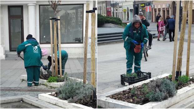 Bez obzira na niske temperature za ovo doba godine, radnice Gradskog zelenila, čim su prestale padavine, razmilele su se po centru Novog Sada.Proleće je zvanično počelo, pa u skladu s tim valja prionuti na ulepšavanje zelenih oaza na trgovima i u najprometnijim novosadskim pešačkim zonama. Tako smo na Pozorišnom trgu zatekli grupu radnica "Zelenila" kako pleve zasađene površine, omogućavajući biljkama da "prodišu". Tekst i foto: S. Savić