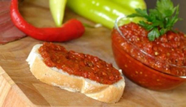 4 modra patlidžana staviti u zagrejanu pećnicu i ispeći. 10 paprika ispeci na plotni, oljuštiti, izvaditi seme i sitno iseći. Paprike pomešajte sa takođe oljuštenim i isečenim na, komade patlidžanima. Tada to tucati tako da sr pretvori u jednu masu, u nju onda dodati nekoliko češnjeva sitno isečenog belog luka, soli, sirćeta i ulja. Promešati.