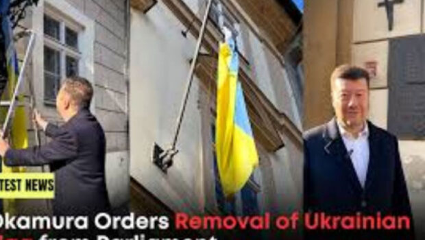 U ukrajinskom parlamentu danas se kao odgovor na Okamurin postupak zavijorila češka nacionalna zastavaLider čeških radikalnih nacionalista, novi predsednik Poslaničkog doma Tomio Okamura, dao je juče da se demonstrativno skine ukrajinska zastava sa zgrade donjeg doma parlamenta ali umesto jedne skinute vijore mu se, u znak protesta, sada već pet. Okamura je lično pridržavao merdevine kada je činovnik skidao ukrajinsku zastavu koja je na zgradama mnogih čeških institucija od napada Rusije na Ukrajinu 2022. ; Na društvenim mrežama pohvalio se na snimku kako drži