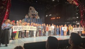 Glumci Narodnog pozorišta su večeras, na kraju predstave koju su izveli na sceni Pozorišta na Terazijama, razvili transparente "Narodno je […]