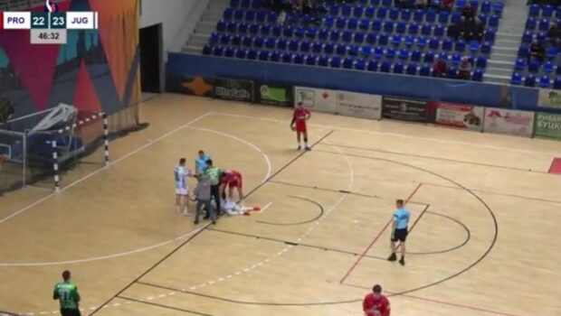 RUKOMETAŠ Jugovića iz Kaća Saša Terzić doživeo je uznemirujuću povredu na utakmici sa Proleterom iz Zrenjanina.FOTO: Printskrin/Jutjub/ARKUS Liga Duel odigran u "Kristalnoj dvorani" u ARKUS ligi zabrinuo je navijače nakon strahovite povrede Saše Terzića. Levoruki bombarder Jugovića je sredinom drugog poluvremena dobio udarac u glavu zbog čega je hitno prebačen, a kasnije i zadržan u bolnici na posmatranju. Igrao se 47. minut utakmice, Terzić je sa desnog krila uskočio u šest metara, a tamo je nesmotreno reagovao kapiten Proletera – Živojin Ilić. Došlo je do sudara između