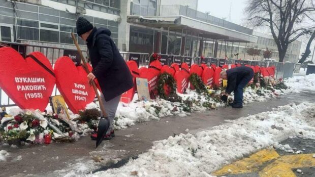 VIDEO: Građani očistili sneg sa komemorativnog mesta ispred Železničke stanice