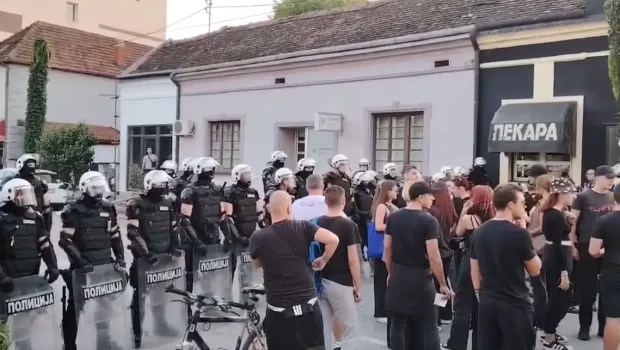 (VIDEO) "Opelo SNS-u" u Valjevu: Kordon sprečio okupljene da priđu stranačkim prostorijama