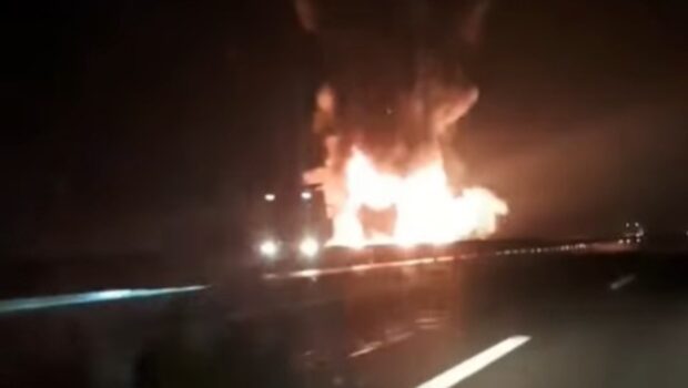 (Video) Požar buknuo na auto-putu, vatra guta prikolicu kod Kovilja