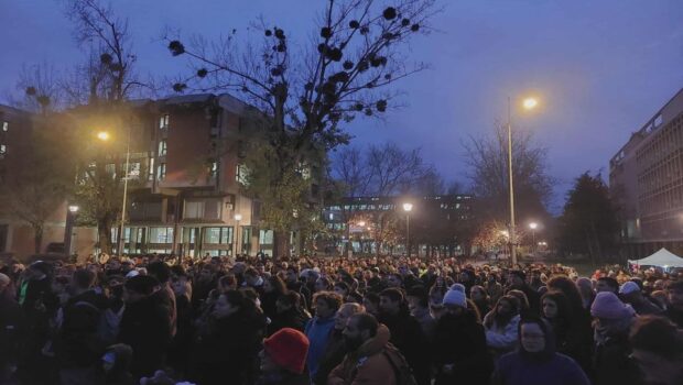 (VIDEO) Skup podrške Jeleni Kleut u kampusu: „Kada se kažnjava kritičko mišljenje, ugroženi smo svi“